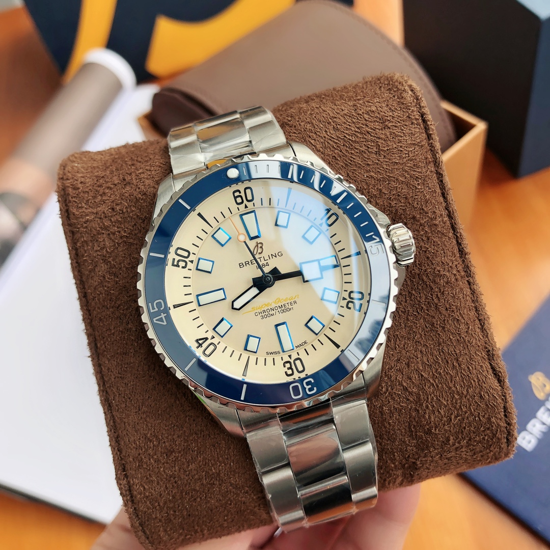 Gender: men’s. Brand: breitling. Clasp: fold clasp. Condition:excellent. Case material: steel. Clasp material: steel. Movement: automatic. Crystal: sapphire crystal. Bracelet material: steel. Movement/caliber: breitling. Case material: stainless steel. Bezel material: stainless steel. Box: includes original box, manuals and card.