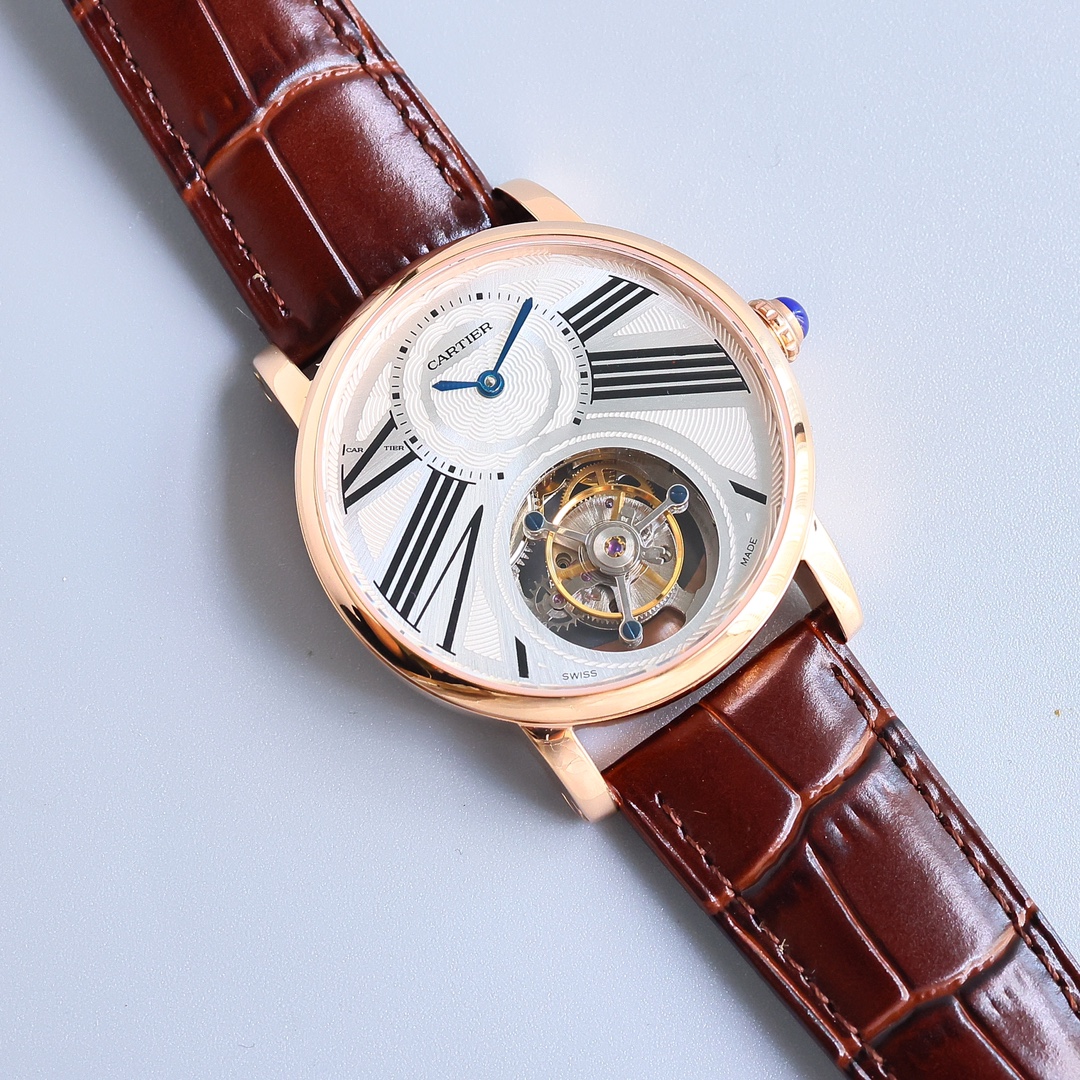 Brand: Cartier. Dial Color: White. Condition: Very Good. Case Size: 45mm. Metal Type: Stainless Steel Movement: Manual mechanical. Bracelet / Strap: Crocodile leather strapBox: Includes original Cartier packaging