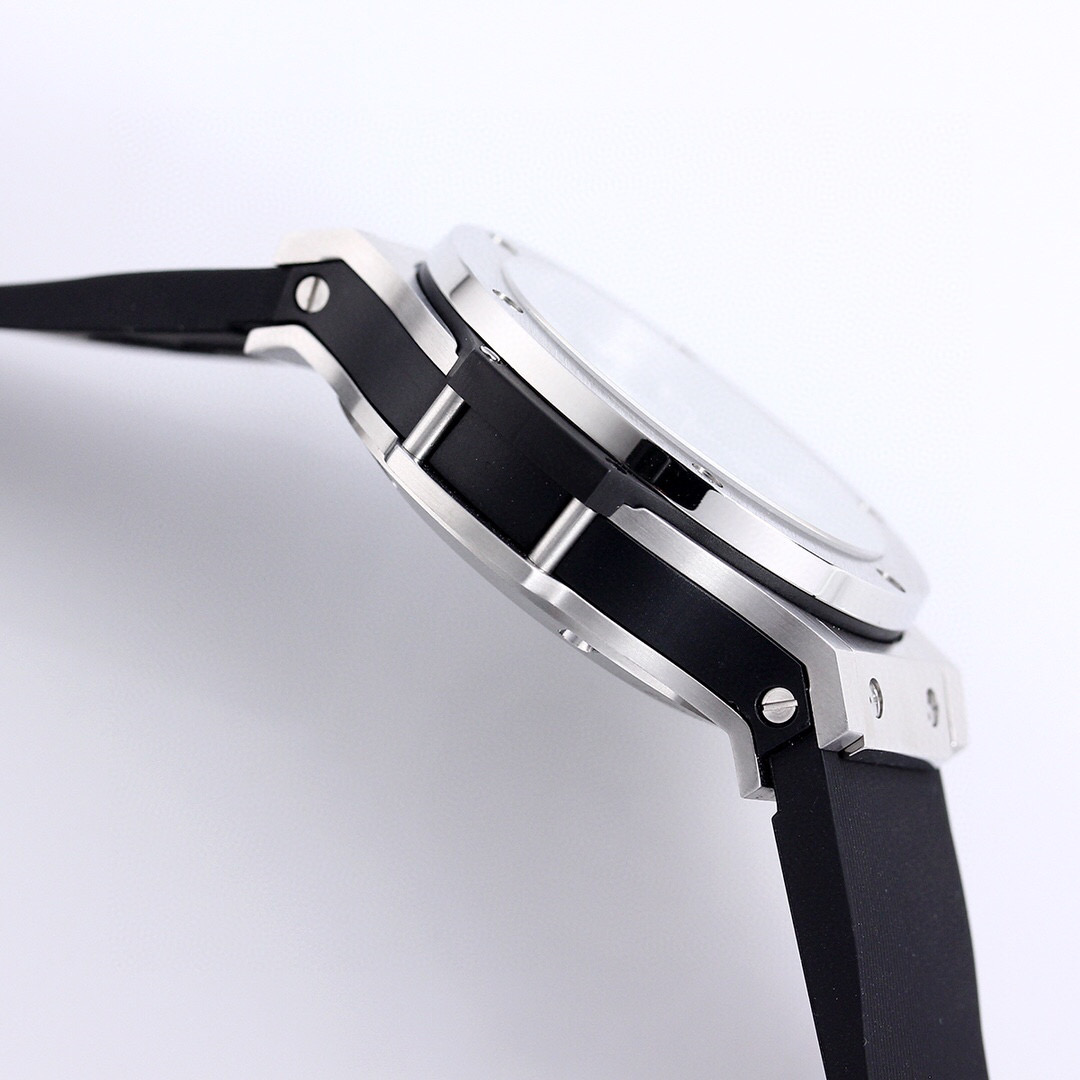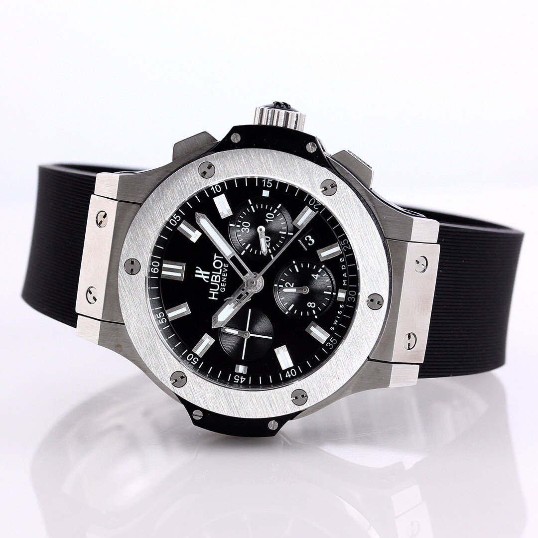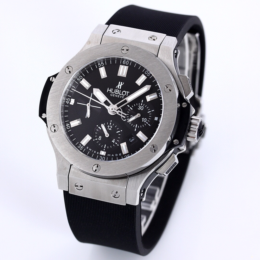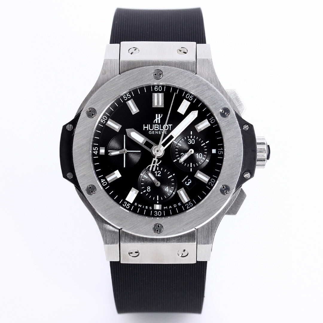 Brand:hublot. Gender: men. Case back:solid. Dial color:black. Condition:good. Case dimensions: 44mm. Bracelet / strap: black. Condition:good condition. Movement: self • winding (automatic). Metal type:stainless steel.