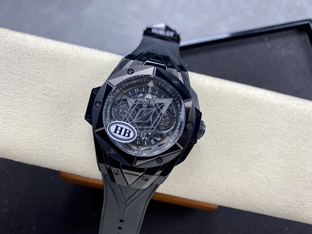 Brand:hublot. Gender: men. Case back:solid. Condition:good. Case dimensions: 45mm. Bracelet / strap: black. Condition:good condition. Movement: self • winding (automatic). Metal type: ceramic.