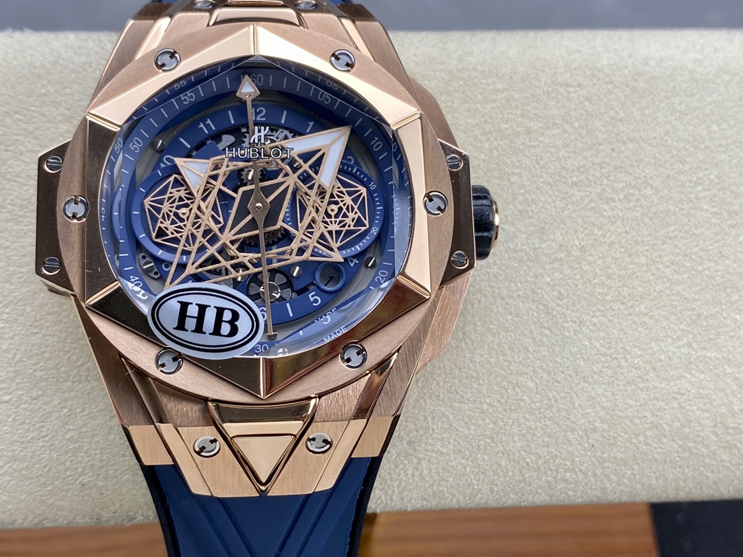 Brand:hublot. Gender: men. Case back:solid. Condition:good. Case dimensions: 45mm. Bracelet / strap: blue. Condition:good condition. Movement: self • winding (automatic). Metal type: stainless steel.