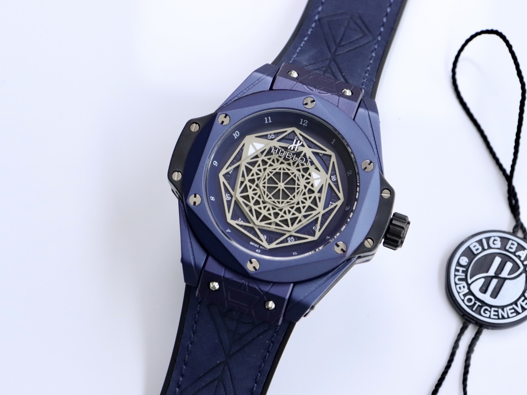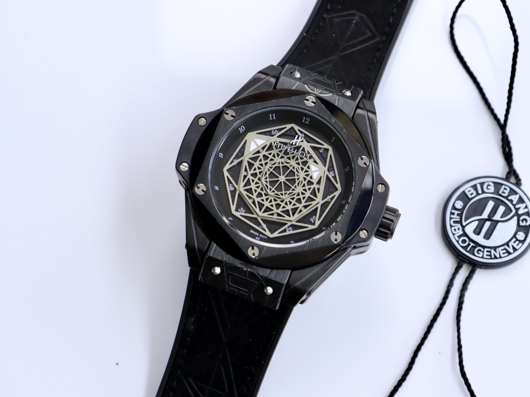 Harmonious patterns and balanced proportions blend and coexist, perfectly interpreting the infinite mystery of geometric shapes in the dimension of time!beautiful and magnificent under the unparalleled stable timekeeping. ensure the alignment of the pattern: swiss professional • grade correction instrument is used to collect the pattern, and after multiple adjustments, it ensures that the complex geometric lines match the original, three • dimensional interlacing, and sharp edges and corners. improve the polishing standard: each finished product has been carefully crafted and strictly controlled by hb watchmakers. Ensure that the original consistent contours and interlaced lines can be achieved. equipped with hublot classic folding steel buckle, the texture is bursting, and the opening and closing is powerful.