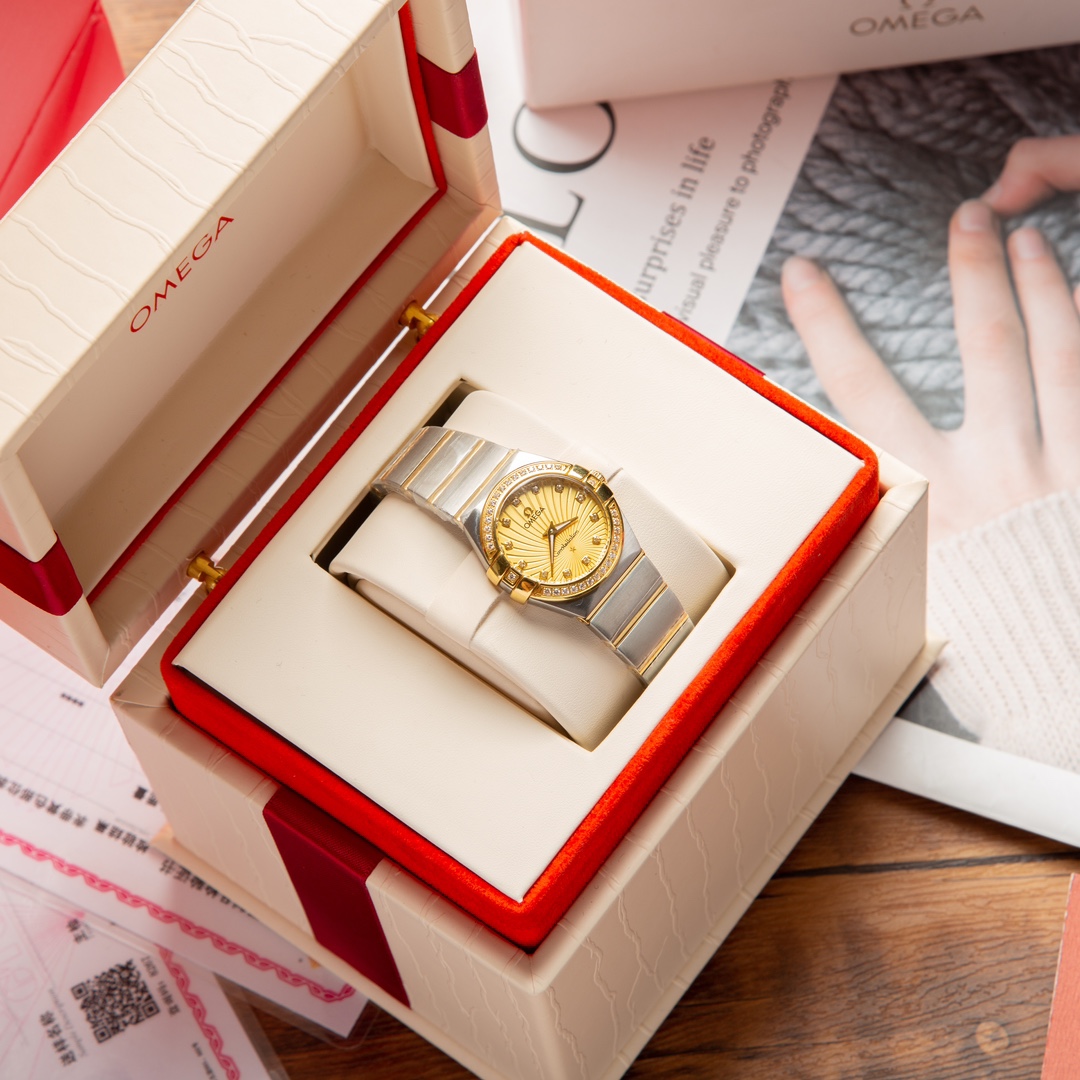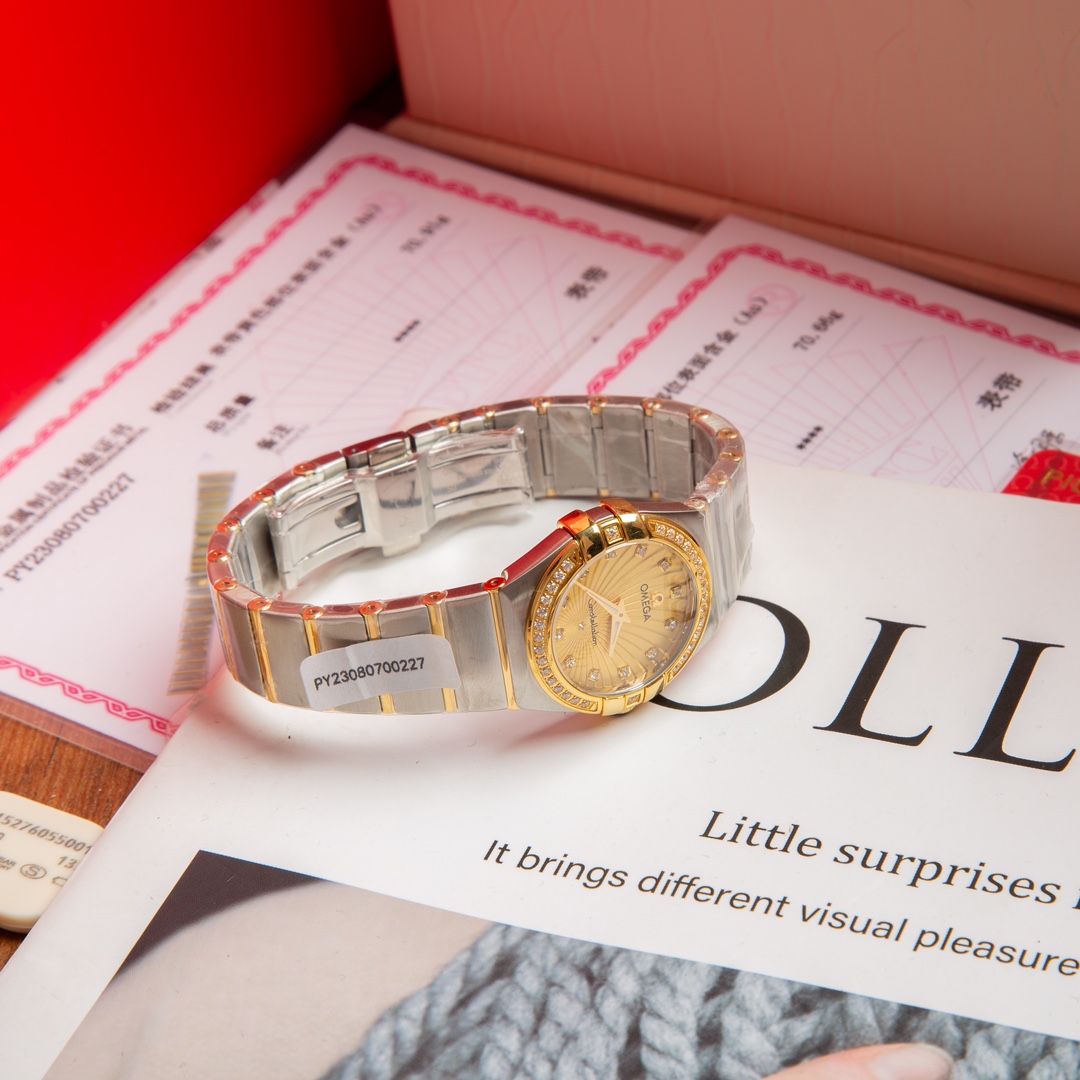 OMEGA Model 123.15.27.60.55.004. The fourth generation of the Constellation eternal classic! Constellation series case and strap glossy model, this hard product is here, very strong internal channels, the foundry has reserved a few original Omega! Good things are not often available. Hurry up and buy it if you like it. This Constellation series. Quartz. Diamond women’s watch, watch diameter 27mm. Original Omega movement model 2800.01 named cal1376 quartz movement. Anti-glare sapphire mirror. The watch is made of a full set of 316L steel without electroplating. It will never fade.. It has a certificate from China’s GTC testing agency, and the strap head grain is definitely not the protruding version on the market. Note: the font inside the strap is composed of 3 sizes of different styles, the font is clear and the workmanship is exquisite, it is not the same font on the market, the Roman light spots radiate, the black dial is inlaid with real diamond scales, which is luxurious and elegant. The center pattern and stars on the bottom cover are oil-pressed, the texture is delicate, full and clear, and the most important thing is that there are two levels of concave positions with a strong three-dimensional sense, and each watch has an independent encoding of three codes in one.